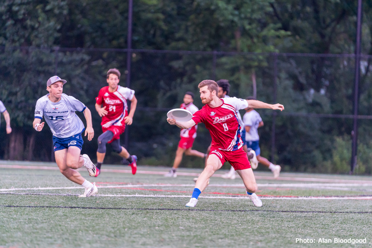 WASHINGTON, D.C. – Week six of the 2023 AUDL season saw the DC Breeze suffer a second tough loss at home, as the team fell to the Carolina Flyers by a score of 20-19. The Breeze struggled at the beginning of the game, giving up a break on the first point and trailed 5-4 at the end of the first quarter.