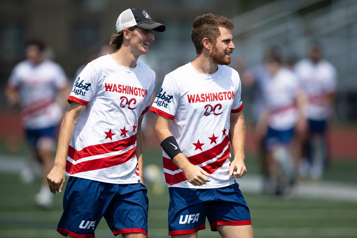 Boston held to open the second quarter and then scored a break via Decraene, who had five goals on the day, to stretch their lead to three goals. Just when it felt like Boston was pulling away, DC struck back with a three-goal run with Aidan Downey finding the endzone on offense and Jasper Tom and Bergeron scoring back-to-back breaks off of blocks from Downey and Micah Wagner, respectively. Wagner’s block was another impressive display of physicality in the deep space by the rookie, beating All-UFA hopeful and MVP candidate Decraene in the endzone. Things then settled down as the first half of the game came to a close with Edmonds adding another goal in what would eventually be a UFA Honor Roll performance. DC nearly tied the game as time expired, moving the disc down the field on the last possession of the half, but Boston's Benjamin Horrisberger shoved Edmonds to the ground, limiting Monroe's options, and with the stall count rising, his pass was just too low for Roy in the endzone. Thus, DC ended the half as they did the first quarter, trailing by one.
