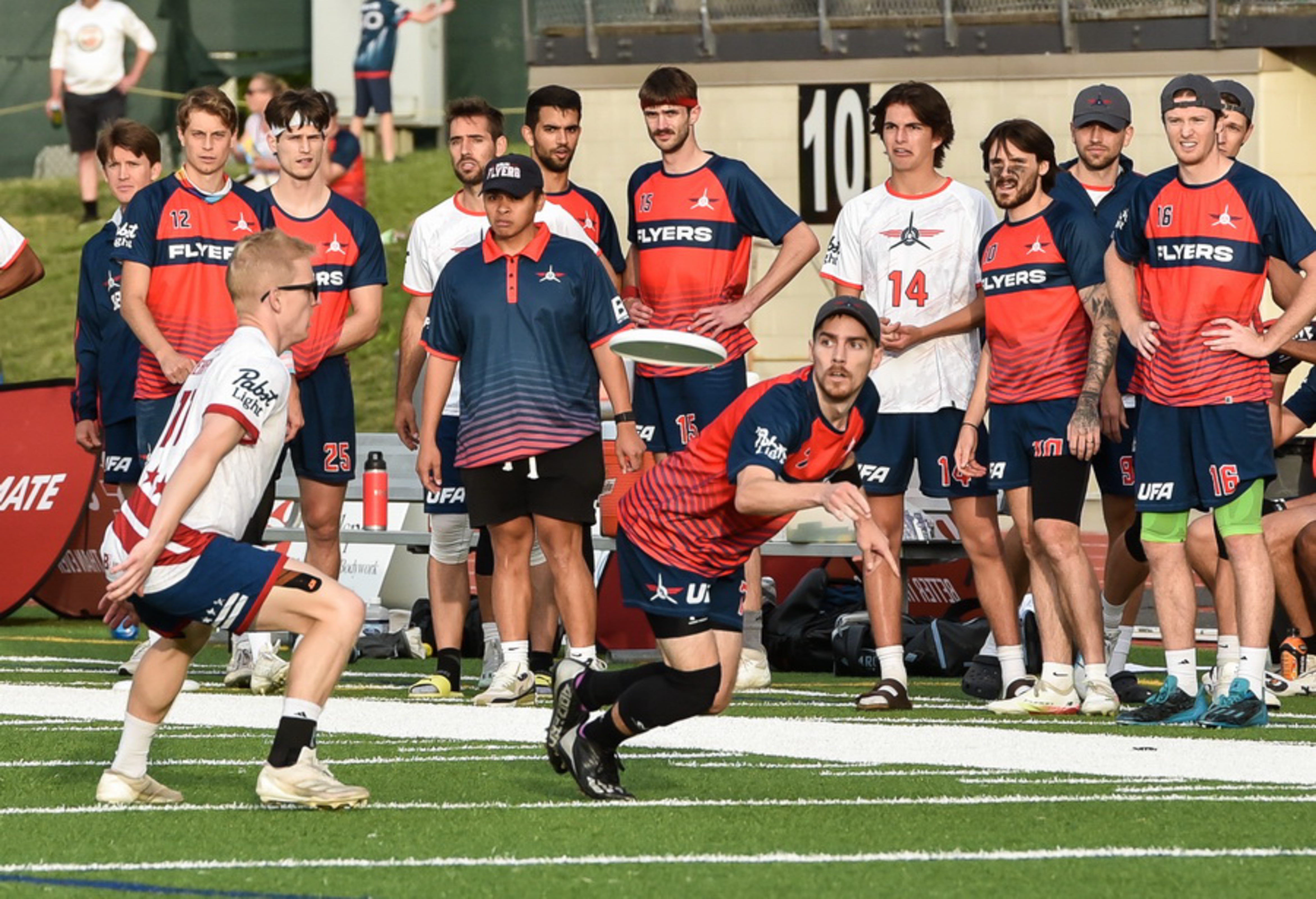 In the makeup game, the Flyers lost ground quickly after the restart. They held quickly and cleanly, capping off a nice first offensive point to the restart with a Grayson Sanner assist to Rutledge Smith score on a strike cut, tying the game at 8-8. The Hustle then scored the last two points of the first half, the first catching the Flyers out of position right after they turned a break opportunity on the next point, and the second coming just before the second quarter buzzer after a long back-and-forth point. And outside the half, the Hustle scored the first two points as well, to build a 12-8 lead across the majority of the third quarter, an advantage they would not relinquish across the rest of the game.