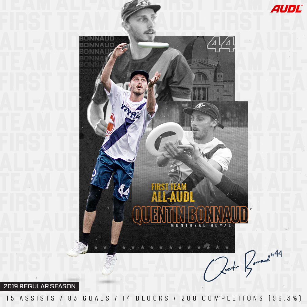 In 2019, Quentin Bonnaud was the most dangerous goal scorer the league has ever seen. He set a new record for goals per game in a single season, averaging 6.9 per contest, breaking Mischa Freystaetter's 6.8 goals-per-game mark from 2016. Bonnaud's league-leading 83 goals is also the fourth highest single season total in AUDL history, despite the league schedule shortening from 14 games to 12 in 2019.
