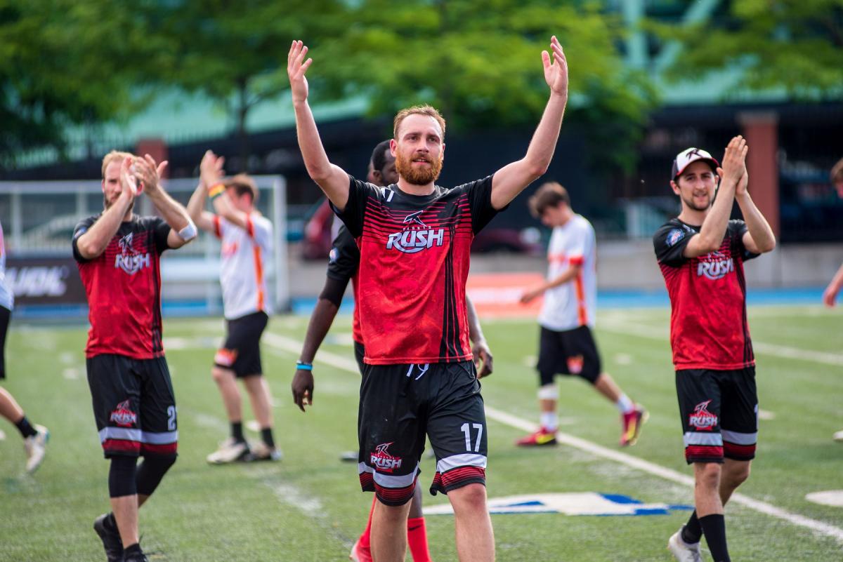 - Jibran Mieser, New York Empire—A somewhat unlikely hero on the New York Empire superteam, the 26-year-old Jibran Mieser, who had recorded just three blocks all season, came up with three clutch Ds on Sunday against Toronto. In his case, it was particularly noteworthy because Mieser played 90 percent O-line over the past two seasons, but he thrived on defense against the Rush, chasing and limiting Akifumi Muraoka throughout much of the game. After the game, Mieser told the AUDL.tv telecast, “I’ve always been a D-line player at heart. I started there and I love playing defense. Last couple years, I’ve been playing O, cutting and getting my throws up, but I’ve always loved playing defense. I think it’s so much fun. I was excited when [Coach Bryan Jones] wanted me to cross over. So I was ready. And it’s the East Division champs, so I was pumped!”