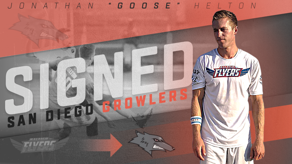Two-time league MVP Jonathan "Goose" Helton has signed with the San Diego Growlers for the 2019 season. The second most potent offensive player in the league last year, Helton scored on 32 percent of his points played with 28 assists and 20 goals over seven games for the Raleigh Flyers. Helton will join a Growlers squad that is looking to build off of their first playoff appearance in franchise history.