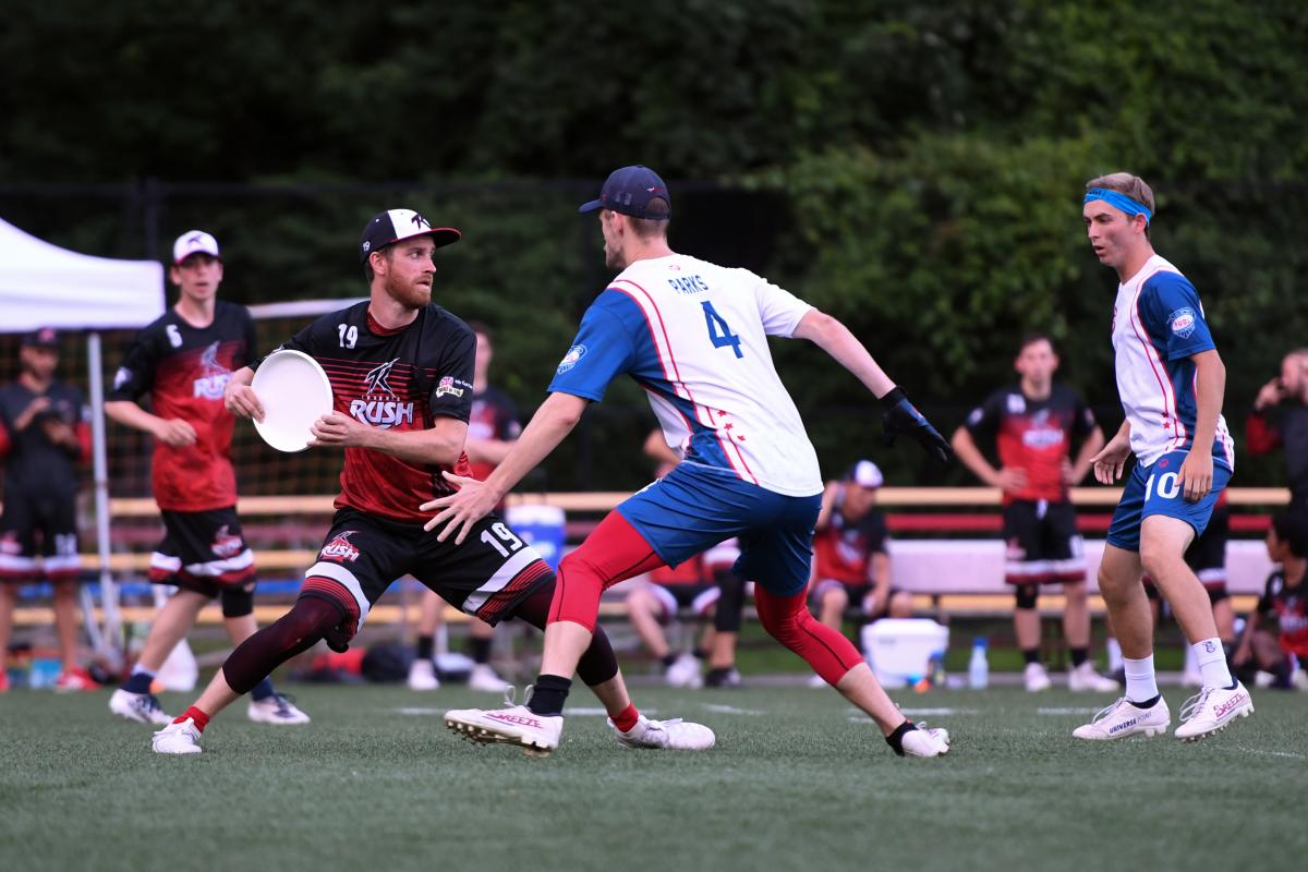 Although the Toronto Rush have only existed since 2013, one could argue that handler Thomson McKnight already has eight full seasons of professional ultimate under his belt. That’s because in addition to the 92 regular season games he’s competed in over seven years—an average of more than 13 per year—he’s also gone to battle 14 times in the playoffs, basically another complete campaign of intense AUDL experience. In fact, only five-time champion Beau Kittredge and a few Madison Radicals can claim more postseason caps than McKnight, who’s been a clutch anchor for the Toronto offense throughout his stellar career.