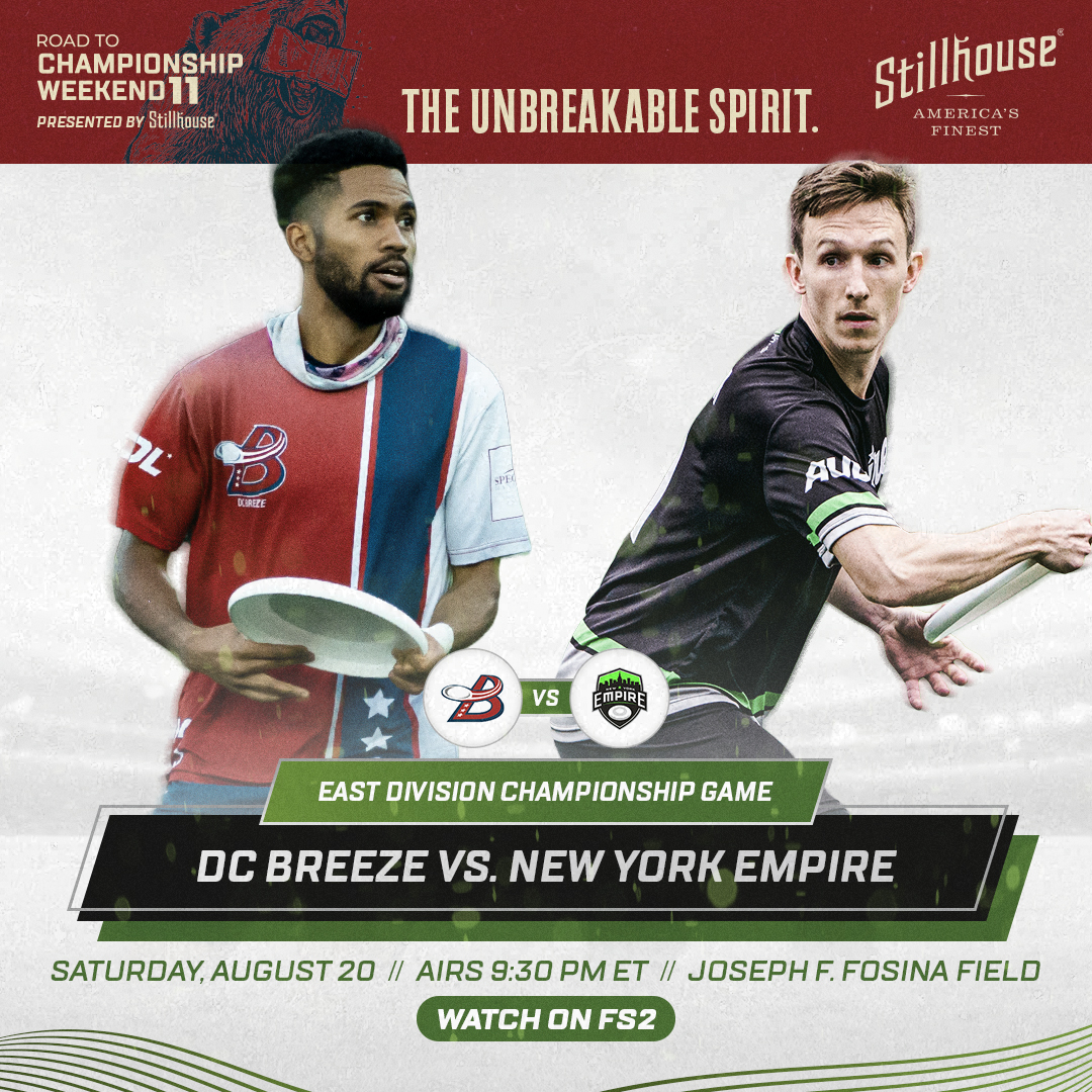 Entering this season, 11 of the past 22 matchups between the New York Empire and DC Breeze were decided by a single goal, often at the buzzer. That fierce history includes this season’s preseason exhibition thriller in Colombia, where New York escaped with a walk-off win on a John Lithio frozen rope to a speeding Ryan Osgar. But in nearly two dozen meetings, the two rivals have never met in an East Division title match before Saturday night’s “AUDL Game Of The Week” showcase. The stakes have never been higher as the Breeze attempt to make Championship Weekend for the first time in franchise history, and end the Empire’s perfect season.