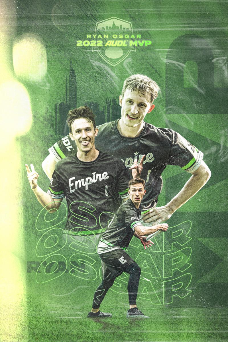 Following a perfect undefeated season and a title, Ryan Osgar of the New York Empire has been named the 2022 AUDL MVP. In his second year with the team, Osgar was the leading scorer and yardage producer for an Empire offense that finished with the highest offensive efficiency in AUDL history. Osgar joins teammate Ben Jagt as the third straight Empire player to receive the MVP award.