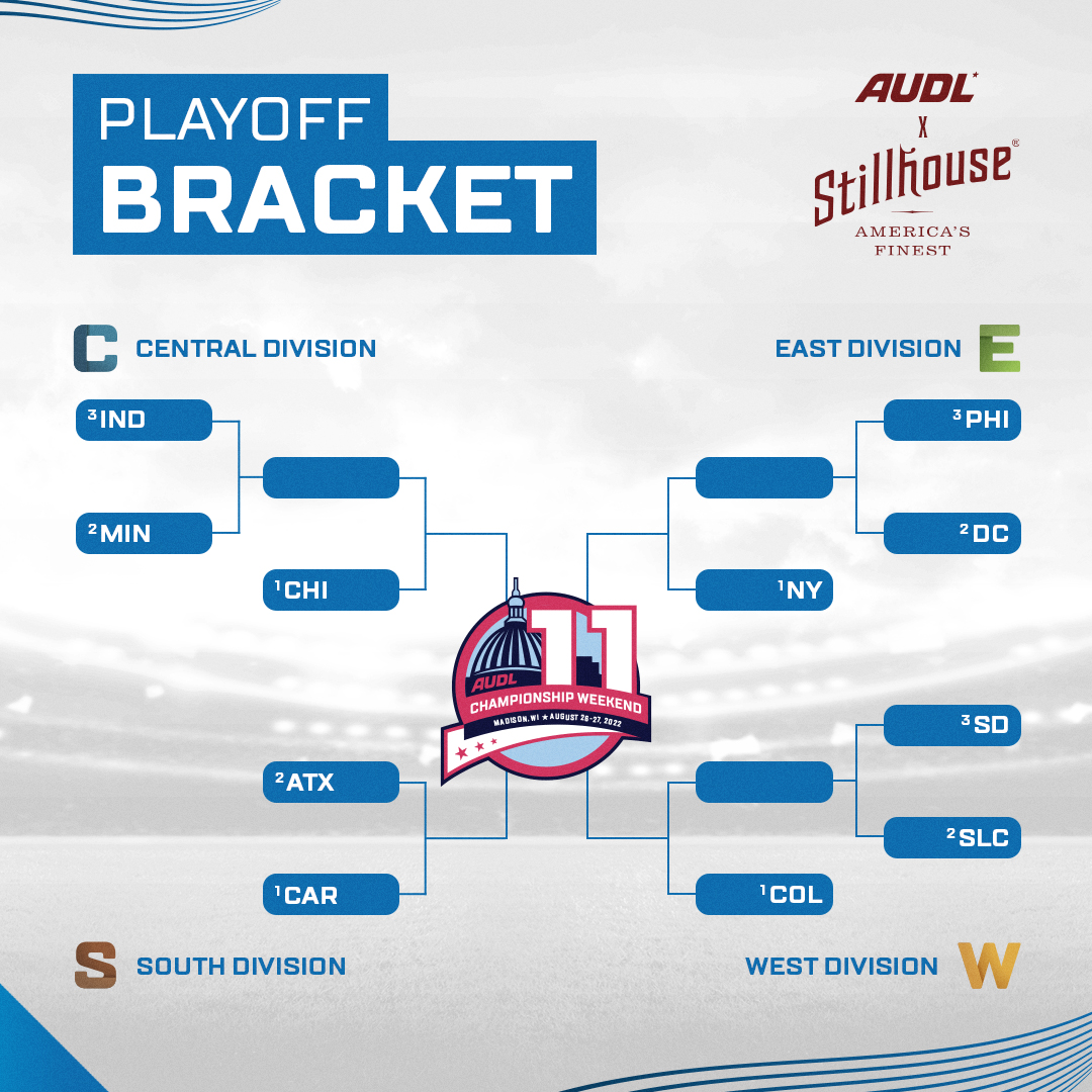 The 2022 AUDL regular season has concluded, and the postseason is set to begin! 11 teams remain in the hunt—including last year's champions from Carolina—for the 2022 AUDL title, which will be settled at 2022 AUDL Championship Weekend in Madison, WI on August 26-27.
