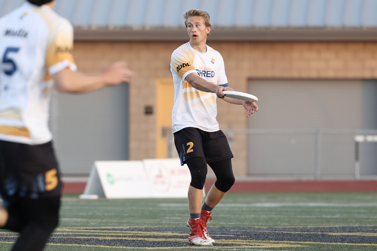 In addition to Selfridge, there’s another 18-year-old phenom playing in his third AUDL game tonight: Declan Miller of the Cascades. Miller has been the unquestioned focal point of the offense since Seattle’s opening game, as he paces the team in total yards and scores through the first two weeks of the season. Whether he’s operating from the handler set or initiating downfield, Miller will look to grind down the Salt Lake defense with his non-stop motor and do everything he can to facilitate offensive flow for Seattle. Miller is accompanied downfield by another talented rookie in 19-year-old Zeppelin Raunig, who has already broken free for nine goals and has shown an ability to earn the disc back after turnovers. Both guys should continue to put up numbers against a Shred defense allowing 22 scores per game.