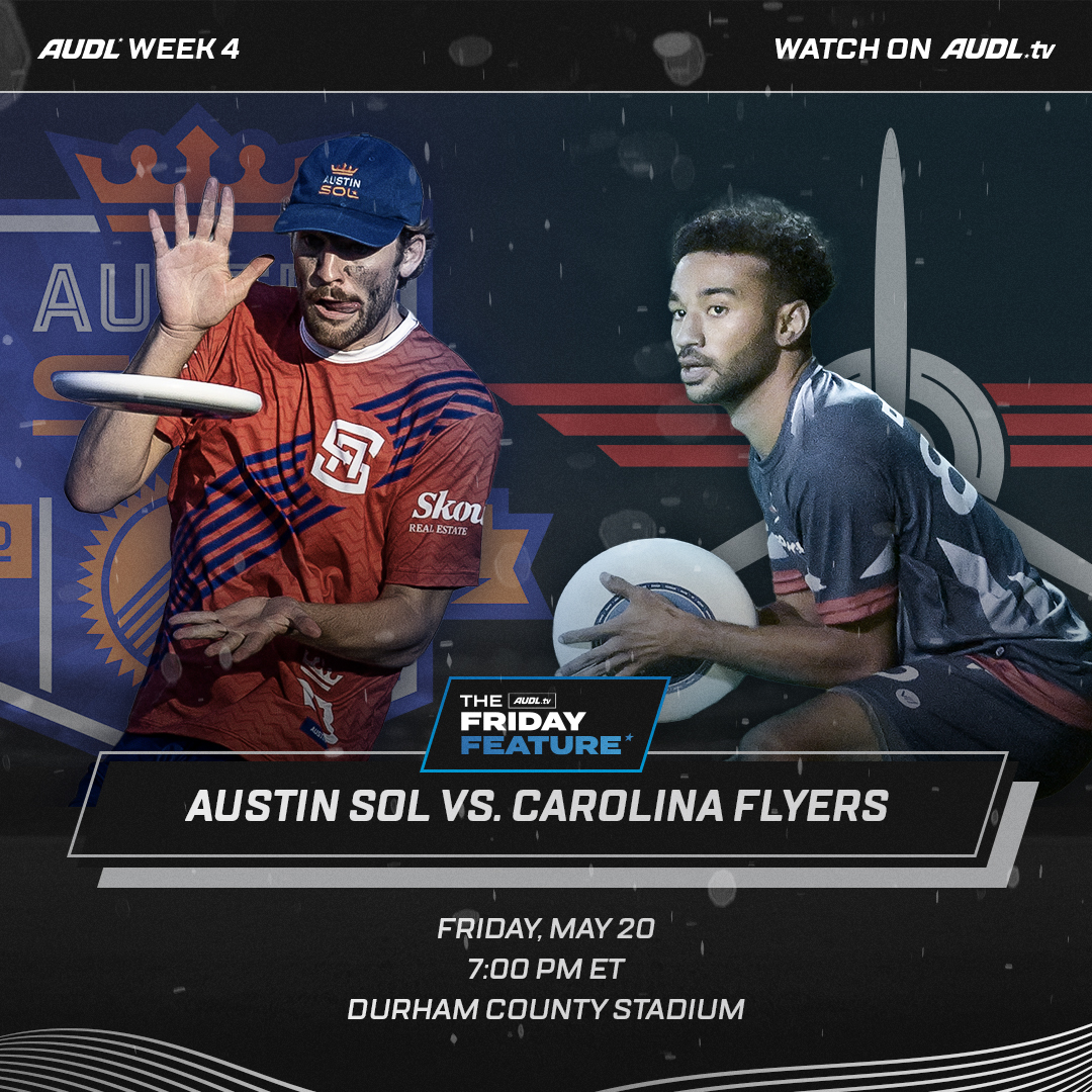 The two remaining undefeated teams in the South Division meet tonight in Durham, as the Austin Sol take on the Carolina Flyers in tonight’s Friday Feature. It’s the first meeting between the two teams since 2019; Carolina has won seven of nine meetings all time.