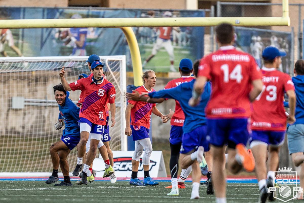 The Austin offense appeared to carry over their precise execution and momentum following the team’s big Week 6 win over Carolina, and was in rhythm the entire first half on Friday night. The Sol scored 12 goals, converted 9-of-11 offensive points, and completed 8-of-10 huck attempts in the first two quarters, with Jake Radack and Evan Swiatek carving some impressive throws through and over the Chicago defense.