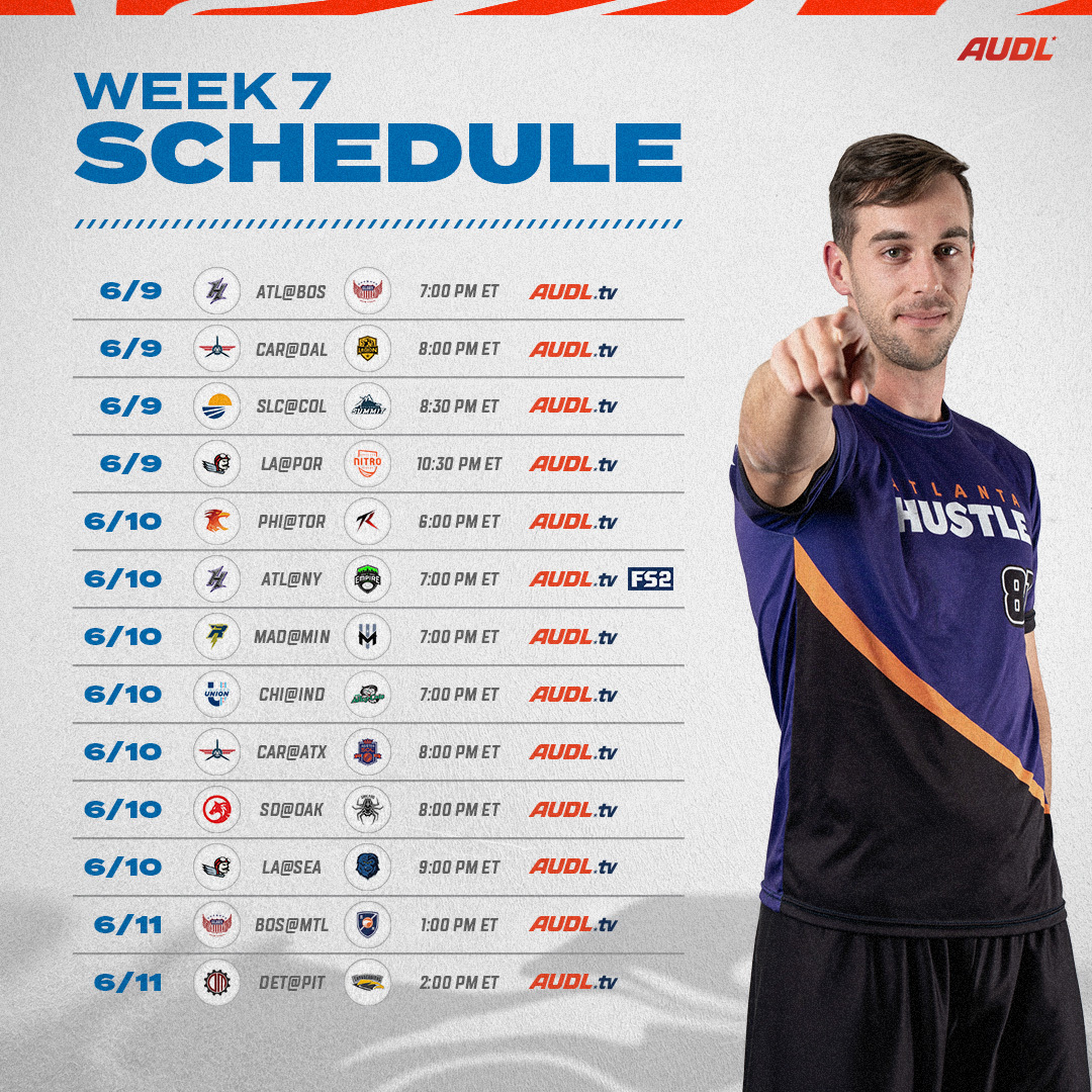 “Carolina at Dallas might be the highest chance for a team to get held to single digits this season since New York did it Philly in a super sloppy week 1 game. The Flyers held the Havoc to 11 at home just last week, it'll be interesting to see if traveling takes a toll on them enough to keep Dallas in the game. Also, Boston might have the first Friday/Sunday doubleheader weekend in AUDL history?” Clint McSherry, Pittsburgh Thunderbirds