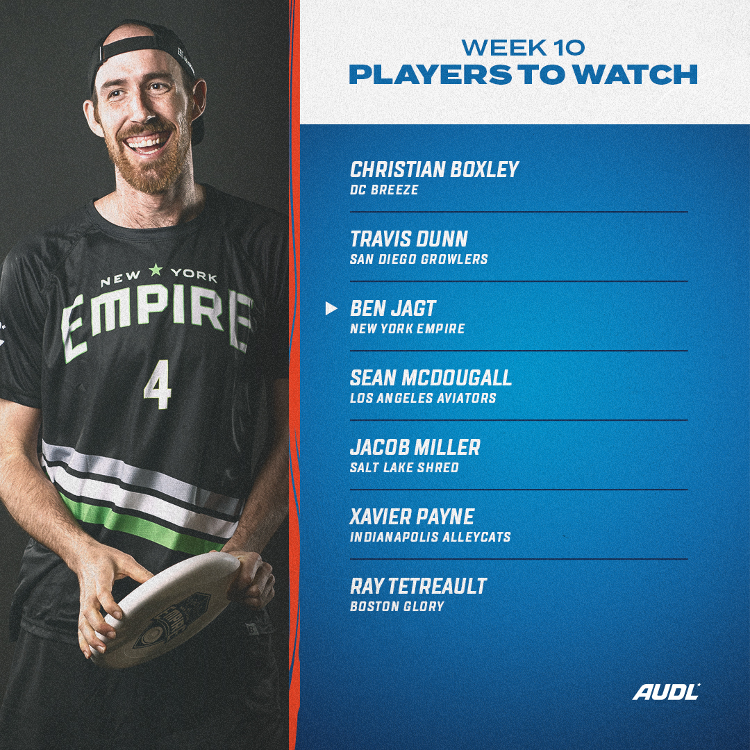 Last time the DC Breeze played the New York Empire back in Week 3, Christian Boxley set career highs in both assists (4) and receiving yards (311), as he was directly involved in over a third of DC’s total scores on the night. Seemingly always right where his team needs him, Boxley effortlessly glides between the backfield, midfield, and deep space as the offense’s most dynamic receiving threat; through the team’s first eight games of the season, Boxley leads the team in receiving yards by nearly 500 more than the next closest player, and he’s averaging over 50 more receiving yards per game than last year. He has the straight-line speed to take the top off defenses plus the quickness to operate underneath as a chain-mover, and he’s sure to be busy tomorrow night in another meeting with the Empire—he’s averaged over five scores per game in four matchups with New York since he rejoined the Breeze last year.