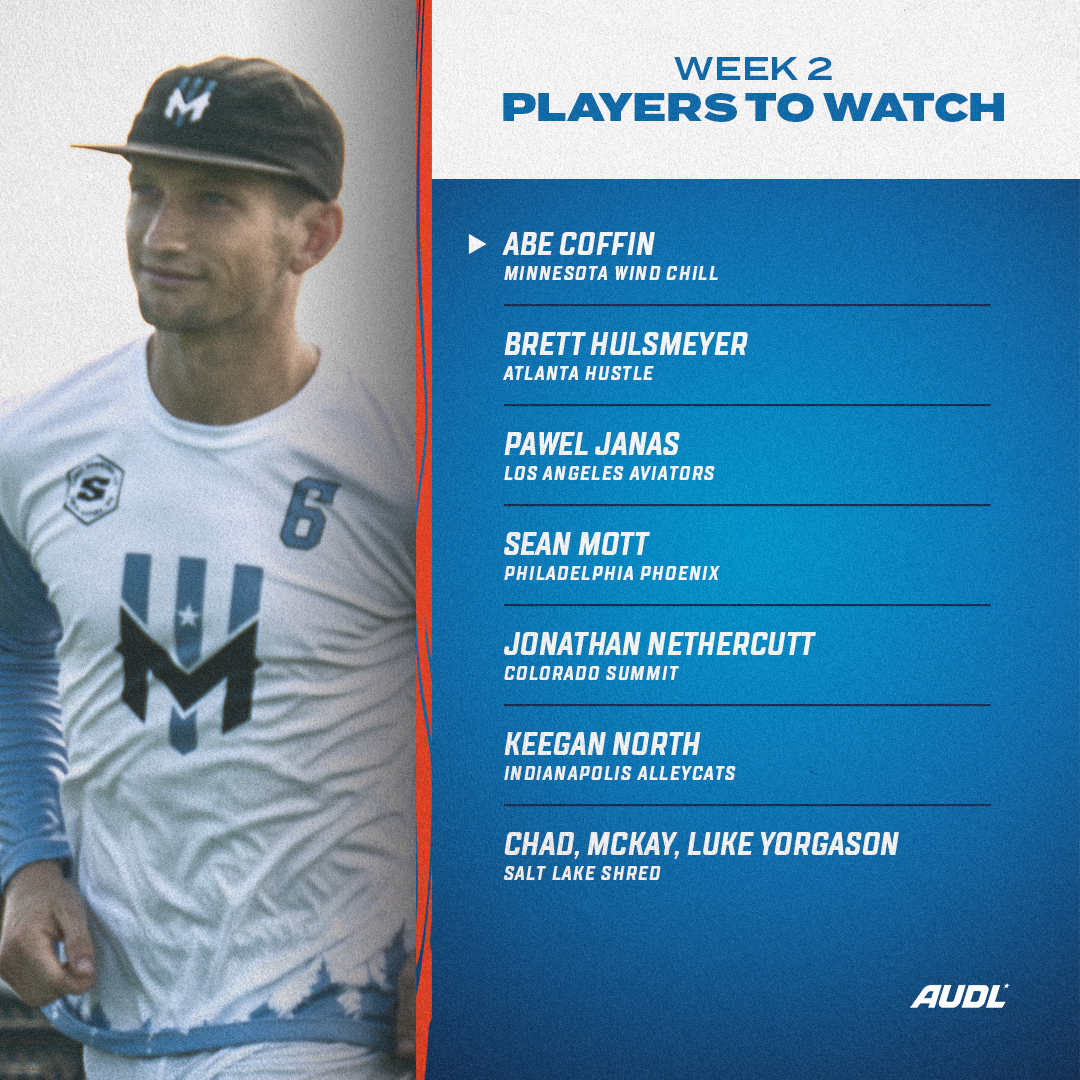 Players listed in alphabetical order. Watch every game live at watch.AUDL.tv.
