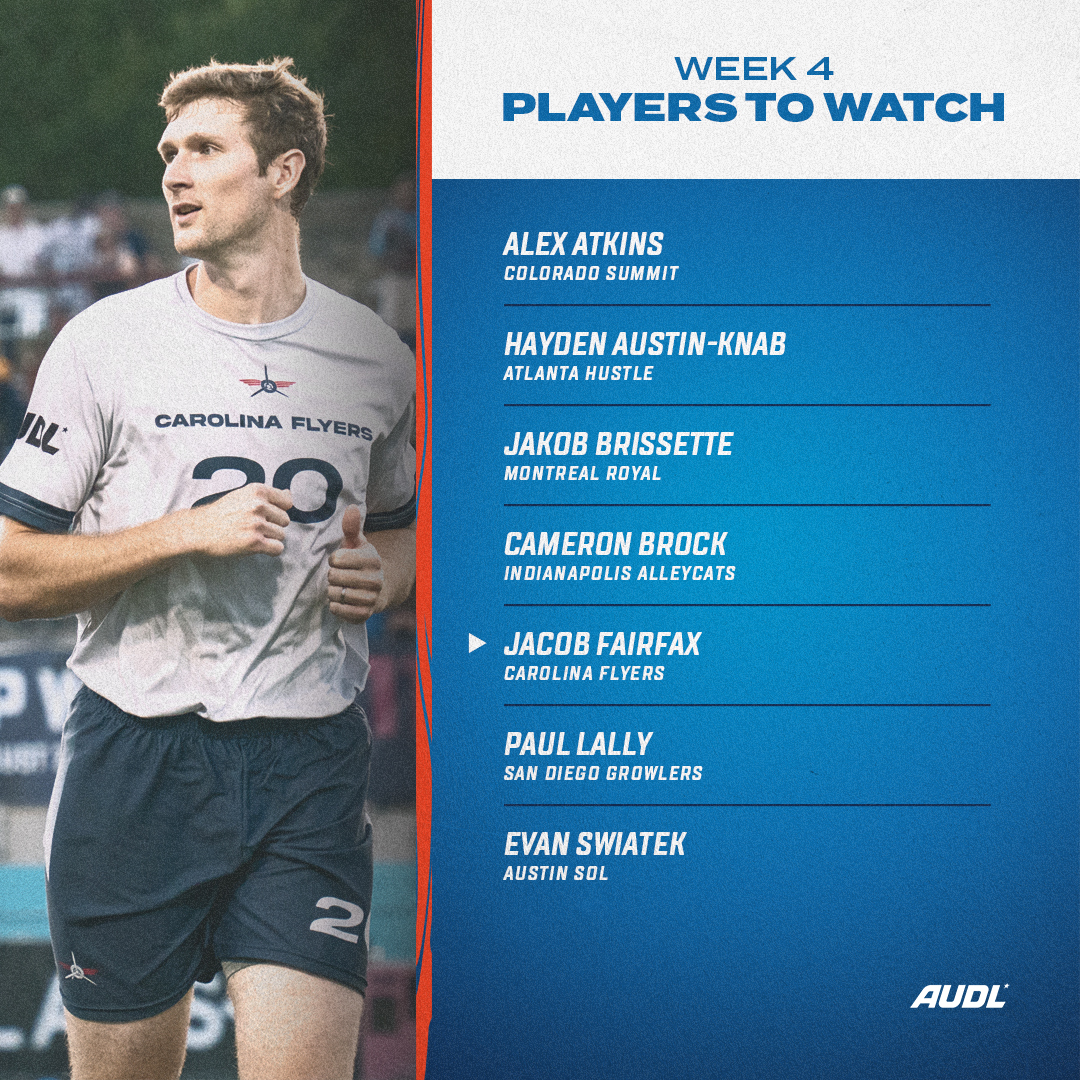 It’s been a different-than-usual year for the Carolina Flyers O-line, but through all of the uncertainty of their rotations, Jacob Fairfax has looked like the most dominant player on the field more often than not. Fairfax racked up a career-high 690 total yards in the Flyers’ first meeting with Atlanta this season, and I’d be surprised if they don’t lean on him again in the rematch this Sunday. He’s the most established downfield threat on the team, and whether he’s finding softspots in the Hustle zone or burning his matchups deep, Fairfax excels at finding space and immediately punishing defenses. This week, the Flyers will have their most complete stable of throwers we’ve seen this season, with Matt Gouchoe-Hanas, Liam Searles-Bohs, Joe White, and Sol Yanuck all expected to play; the latter three will be looking for someone to take the top off the Atlanta defense, and Fairfax stands to be a primary option.