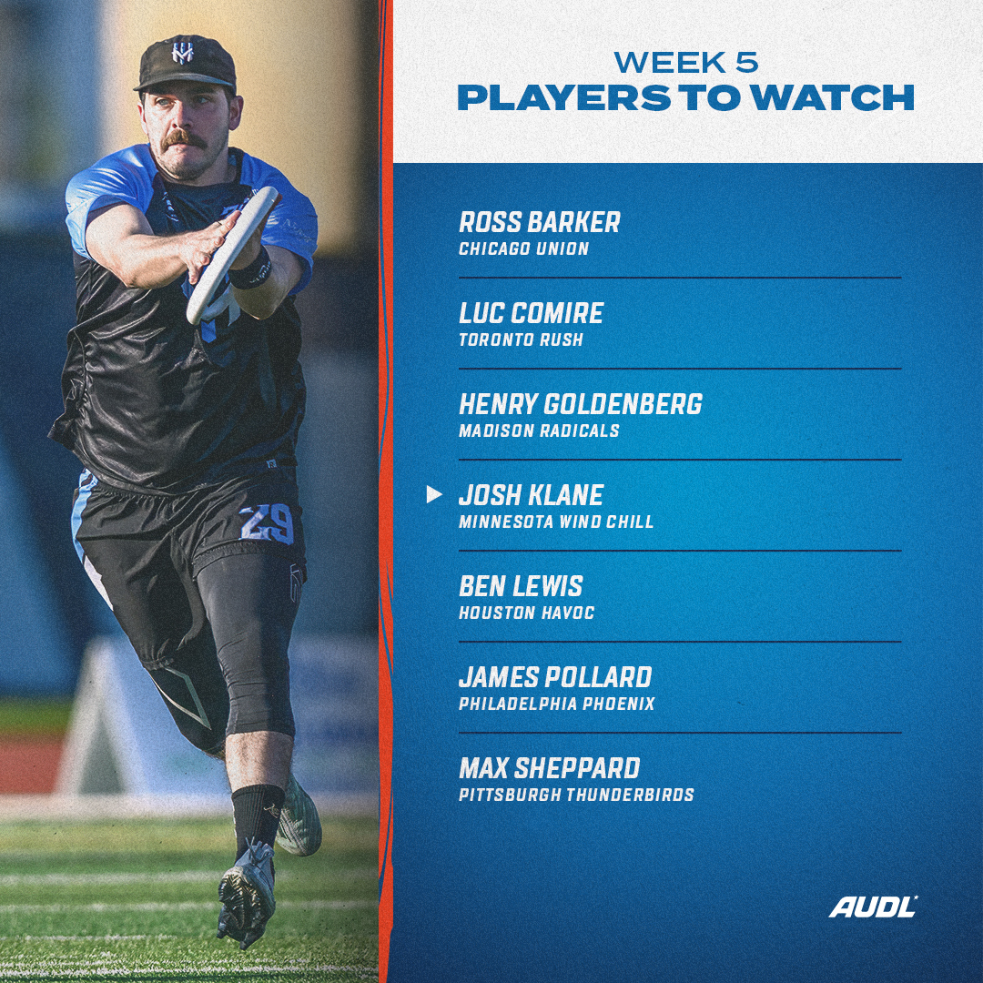 The spotlight is on the Central Division this week, with big matchups between Chicago, Madison, and Minnesota in addition to an interdivisional game for the Pittsburgh Thunderbirds. This week’s list features several players hoping to lead their teams to bounce-back performances, as playoff hopefuls look to make a push in the middle third of the season.