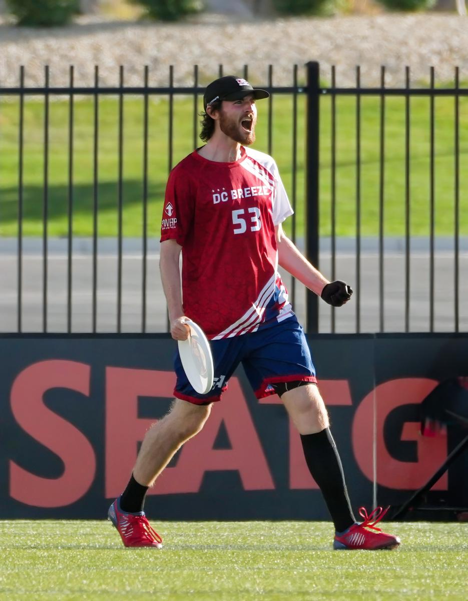 Holland explained that he didn’t want to show up and take a roster spot from a more committed player if he couldn’t attend every practice and game. After the season started, however, and it became clear he could attend a number of important games, he formally rejoined the Breeze. He threw one assist and caught two goals through 13 defensive points in his 2024 debut, a June 8 victory over the New York Empire, and finished the 2024 campaign with five assists, seven goals and five blocks and three throwaways over six games in the regular season and playoffs.