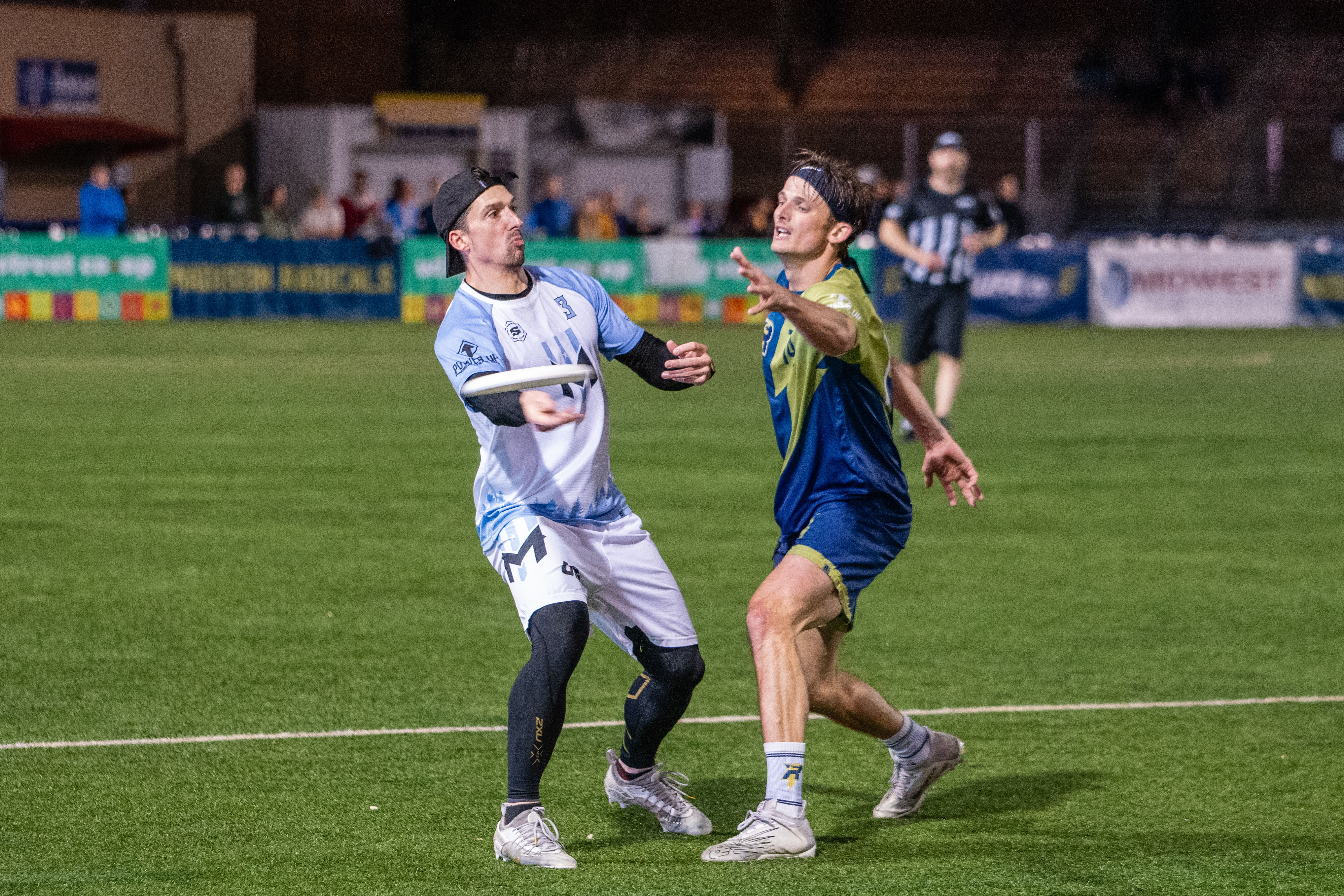 Friday was another big night for B-Von at Breese Stevens Field, as the Wind Chill Captain led his team with 493 total yards, four assists, three goals, and a block as Minnesota won for the fourth time in its last five trips to Madison, surpassing the Radicals 21-17. Coming off a disappointing home loss to Pittsburgh in Week 4, the Wind Chill again started slowly, but Bryan Vohnoutka’s buzzer-beating sky to close out the opening quarter helped to significantly swing the momentum. Minnesota closed the first half on a 7-3 run and never trailed over the final 24 minutes, prevailing by four and handing the Radicals their first loss of the season.