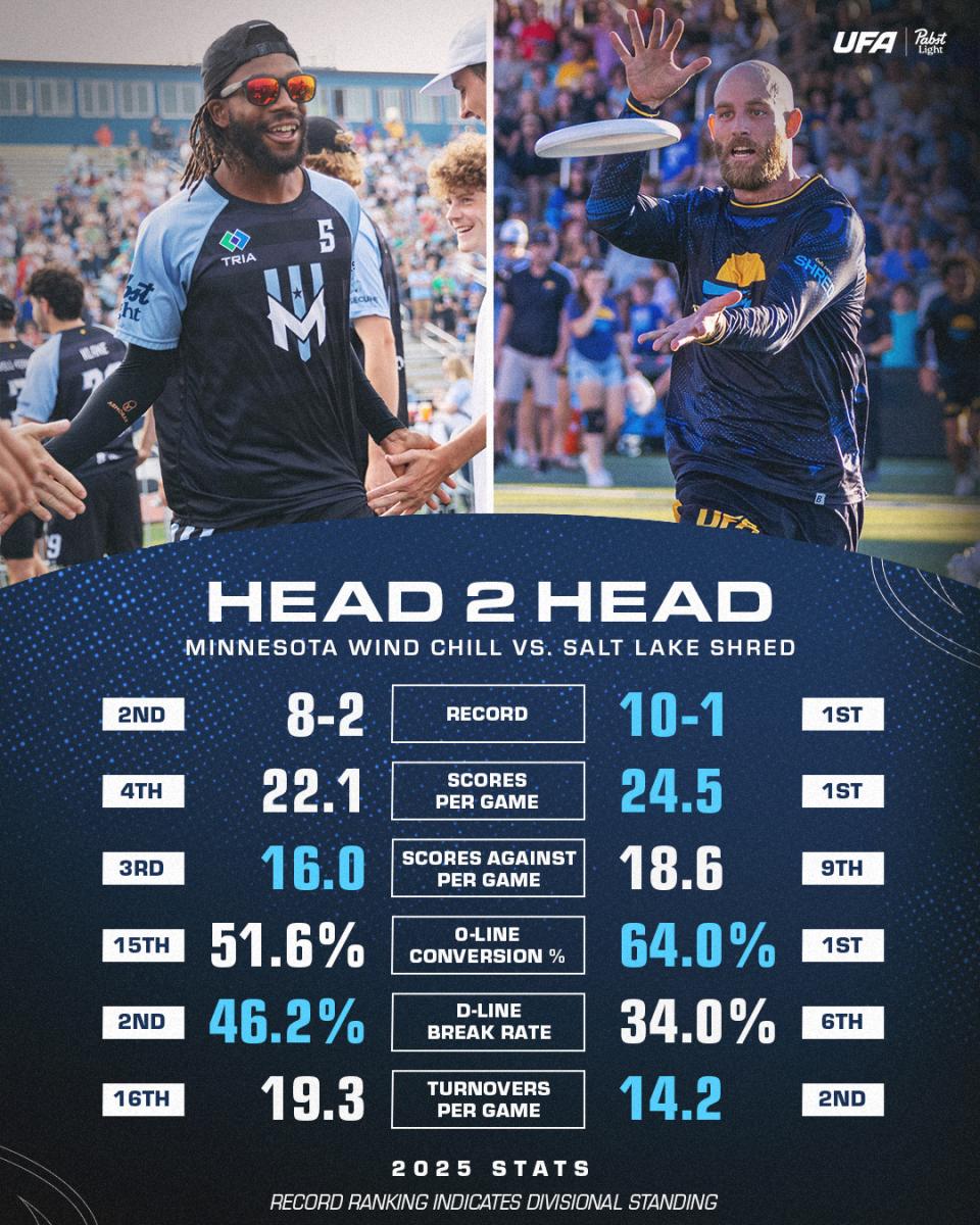 For the second straight week, the Salt Lake Shred will host "Friday Night Frisbee". After a thrilling win over the Colorado Summit last Friday that brought Salt Lake’s winning streak to ten games, the Shred will try to close their season with a win over the Minnesota Wind Chill, who won a title in Zion’s Bank Stadium nearly one year ago. It's also the first meeting between these two franchises since their epic, overtime game in the 2023 semifinals.