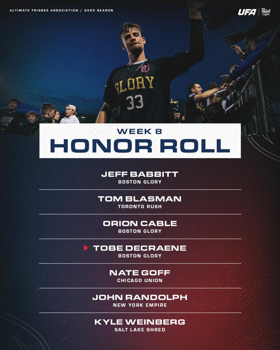 If the Rush D-line struggled to contain Cable, they were also pretty helpless in slowing down the 21-year-old Belgian. Tobe Decraene bettered Cable’s total and finished with 567 receiving yards against Toronto on Sunday night. In addition, he passed for 331 yards and tallied five goals and five assists, while completing 55-of-56 throws in the Glory’s three-point win. And that doesn’t even include his Saturday performance, when he was directly involved in eight of his team’s 16 total scores in a 16-15 double overtime victory over his old team in Montreal. Decraene’s production in Week 8 alone—10 goals, eight assists, one block, and nearly 1,200 total yards—would be a decent season for many players in the league.