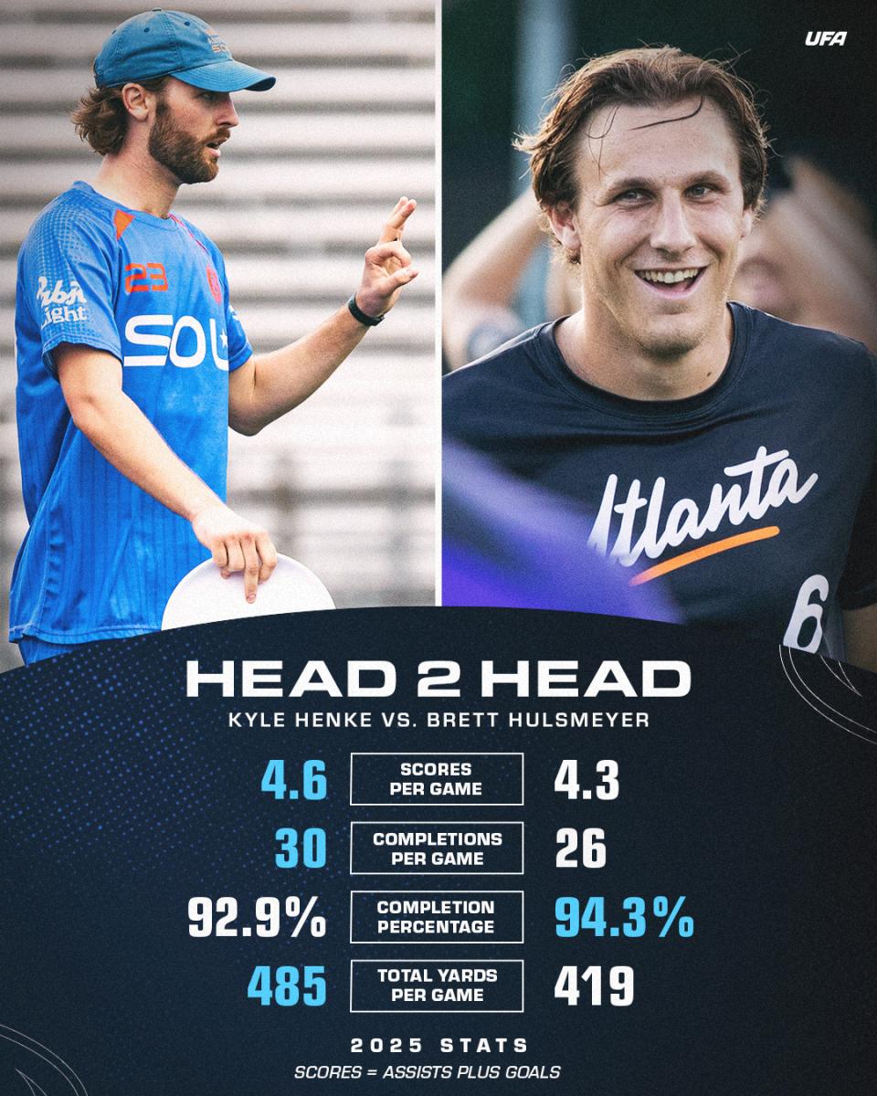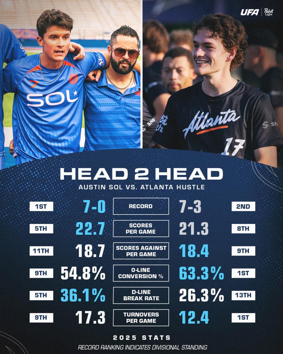 Shifting to Atlanta's D-line, I'm particularly interested in how they defend the huck on Friday. The Sol have attempted double-digit hucks in every game this year, so the Hustle won't want to be too soft against deep throws, an area where they've struggled lately.