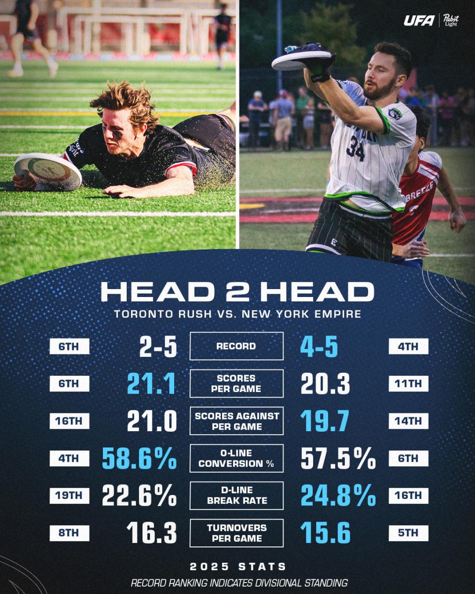 Toronto’s level of play in this game could also be heavily influenced by their Friday Night Frisbee showdown. A grueling, extended game in New York could leave the Rush depleted for Saturday's matchup.