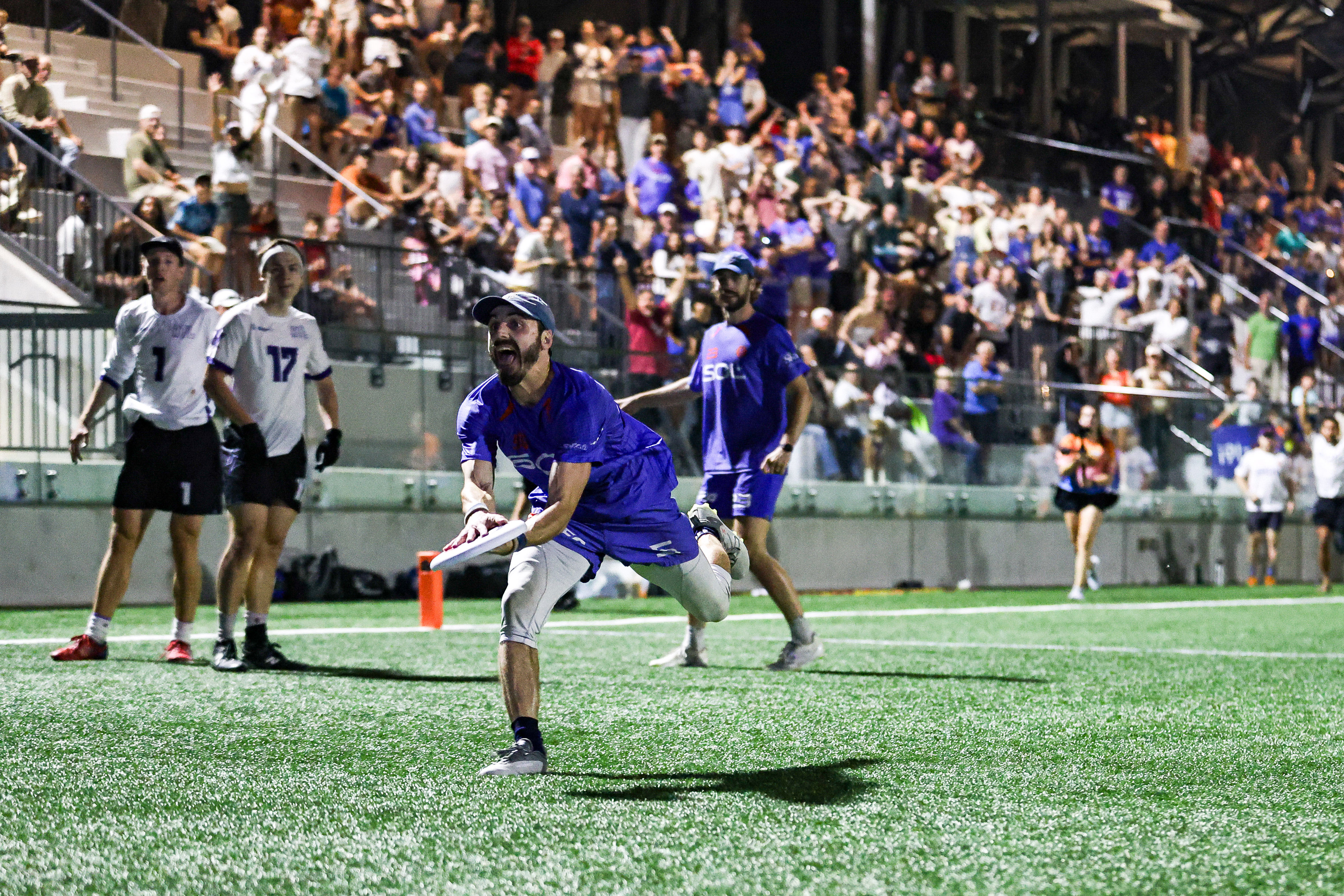 While the game’s final pass sailed over his head, perhaps Kyle Henke was the ideal decoy. After all, Henke, playing in his 84th career game, produced a career-best 11 scores—six assists and five goals—in Austin’s exhilarating double-overtime victory over Atlanta. He also led the Sol with 660 total yards, many of which came from highlight-reel moments that helped his team start the season with a truly marquee win. His wild choice on the final throw of regulation, a sharp and quickly descending blade, landed perfectly in Evan Swiatek’s bread basket to force overtime. And in the game’s final moment, all eyes were on him, as Duncan Fitzgerald’s ill-advised forehand into traffic floated over the crowd, only to be saved by the sprinting Swiatek in stunning fashion. While Henke didn’t actually haul in the game-winner, it’s clear that the Sol would not have won without him.