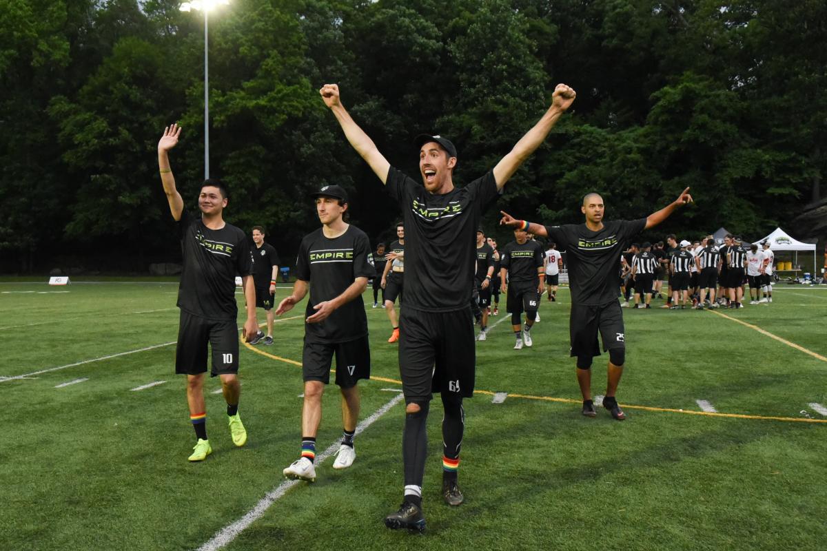 Ben Jagt contributed 15 scores on the night, Harper Garvey bombed the disc anywhere he please, but it was the defensive playmaking of Jeff Babbitt and Beau Kittredge that sealed the New York Empire's most critical showing of the season. The two hulk smashed away the Flyers hopes down the stretch, masking their veteran defensive savvy with truly overpowering displays of athleticism when it mattered most. Though this roster has much different personnel from the days of the "faceless mob" Empire of old, the "next man up" spirit is carried on each point, each week with rigid consistency.