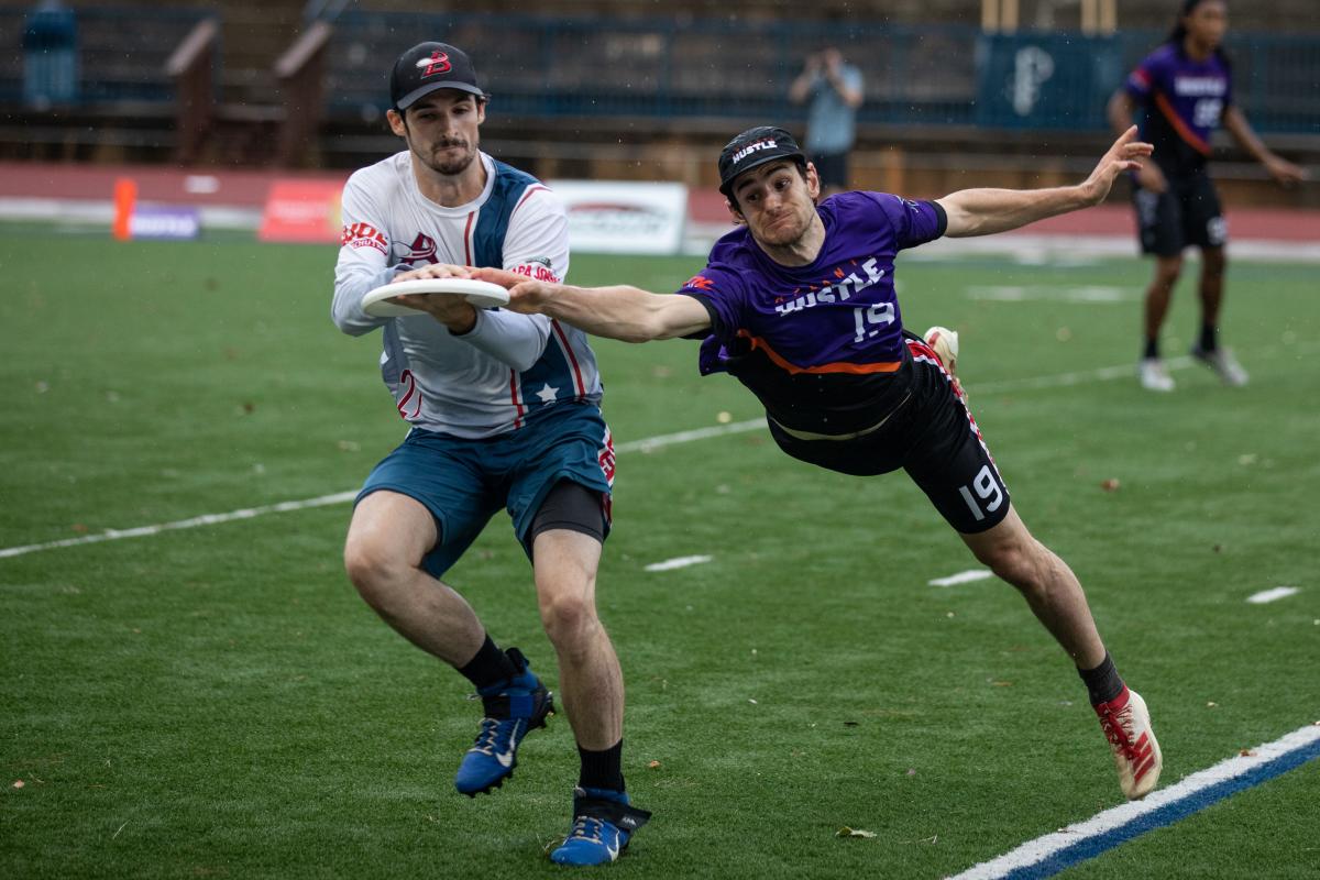The Breeze as a team—offensively and defensively—function at a velocity and collective IQ that is simply too overwhelming for opponents. It’s wave after wave, thrower after thrower, defender after defender of nonstop effort from all their parts. Atlanta removed Zach Norrbom from DC’s gameplan, and that just allowed Rowan McDonnell and first half of the season MVP Jonny Malks to get in their rhythm and throw darts around the field. The really terrifying thing for opponents is: This Breeze team knows how good they are. Heading into Saturday’s matchup with the Hustle, a few teammates were hyping Ben Green for a big night; Green has looked solid in the first few games in coverage, not game changing. But he exploded on the “Game of the Week” stage, and helped shut down the Hustle’s downfield normally imposing options.