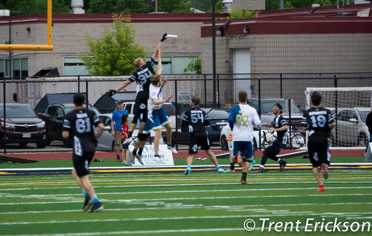 “The main story of the evening was depth and energy,” explained Dylan DeClerck, who returned to the Wind Chill’s lineup after breaking his collarbone in April. “Neither team had all of their top players—we were missing Quinn [Snider], Michael Jordan, Jordan Taylor, [Alan] Scarth, [and Matthew] Ladyman, so both teams were going to need to rely on their depth, and I feel like our team was better prepared to go 20 deep and that allowed us to bring a lot of energy to every point.”