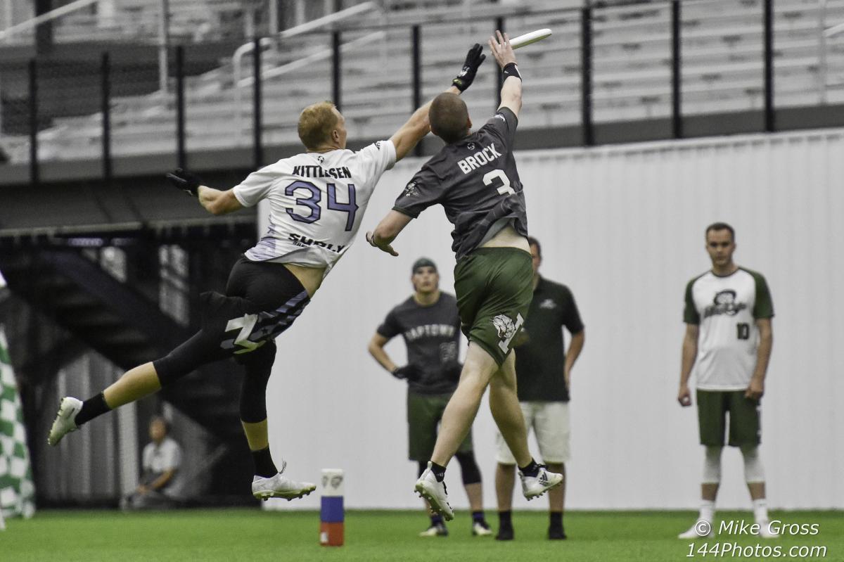 One throw later, Indy took a 23-22 lead as Gross hit Brock with 1:57 left. Of course, it only took 17 seconds for Minnesota to tie the game again, as Josh Klane’s huck found sprinting Bryan Vohnoutka, whose short flip to Matthew Ladyman event things again with 1:40 remaining. And after Carpenter’s only throwaway of the game with 1:18 left, the Wind Chill had a chance to surge back in front. But Indy’s Keegan North picked off Kittlesen’s high-stall throw with just under a minute to go.