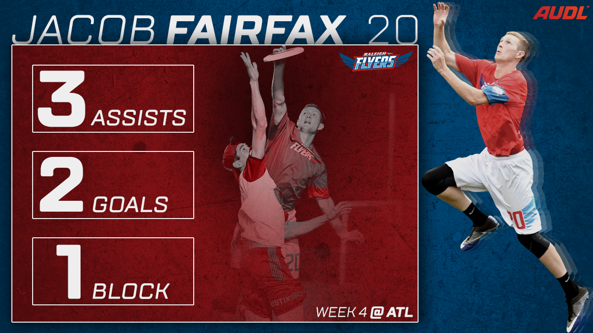 - The Raleigh Flyers depth is unreal. On Saturday, they went to Atlanta without Justin Allen, Jonathan Nethercutt, Mischa Freystaetter, Bobby Ley, Noah Saul, and about seven other starters on offense and defense. That’s two full lines of impact players! But amazingly, the Flyers still looked like a bona fide contender with the 18 bodies they brought, as they cruised past the Atlanta Hustle 21-15.