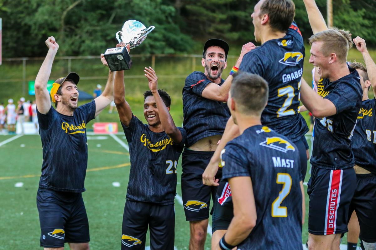 “I challenged both D-lines to trust their marks and start clamping down,” said Pittsburgh Coach Pat Hammonds. “We had to put the hammer down and we opened the fourth quarter with massive breaks from both lines. They responded.” Jimmy Towle and Max Sheppard each finished +6 to lead the Thunderbirds’ offense, while Myles Cooper, Owen Watt, and Steve Mogielski all came up with multiple blocks on D. “The Philly game was a massive confidence boost to the entire squad,” said Towle. “We spent the practice prior reflecting on our awful turnover rate this season and we all took that to heart. The focus and energy was up, and our work paid off.” One unique aspect of the Pittsburgh-Philly AUDL rivalry is the Commonwealth Cup trophy that the two organizations created to celebrate the Pennsylvania matchup. With each game between the two teams, the trophy is hoisted by the victorious team and kept until the next meeting, adding a little extra juice every time the Thunderbirds and Phoenix collide. “Celebrating with the trophy was the cherry on top,” said Towle. “We joked about how we got the sweet end of the deal with the Commonwealth Cup. They had it for two weeks, we get it for a year. It feels like the first time I’ve really seen this team play how it should, and I’m very excited to keep battling. We have a tough schedule looking forward, but our guys are ready to step up."