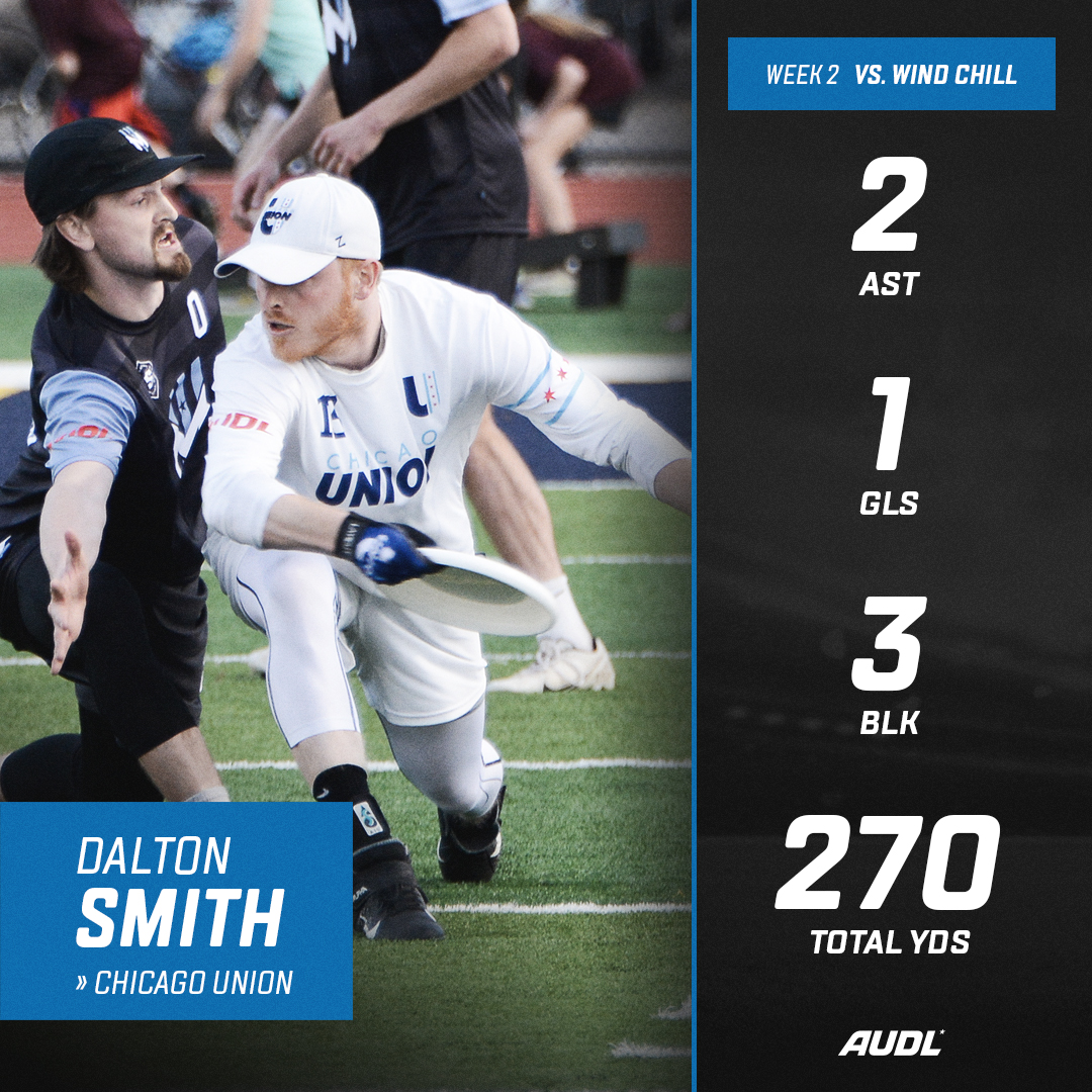 Both teams were more successful going into the wind in the second half, with the two teams combining for eight breaks after halftime, but Chicago’s D-line offense, anchored by Dalton Smith in his Union debut, proved to be the difference in Chicago’s 24-21 road triumph. Nate Goff and Jason Vallee were also clutch disc-movers for the Union working alongside Smith, who completed all 31 of his throws.