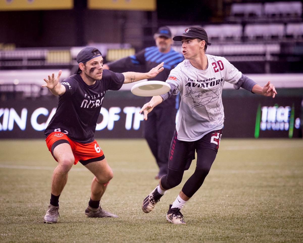 “I think that Saturday night was one of the most fun nights of frisbee I’ve ever played,” said LA’s Aaron Weaver, who made his 2022 season debut against the Nitro. “There was definitely some magic in the air. You could feel the energy as soon as we arrived at an empty Providence Park. There’s a certain level of hype that is baseline when you play at such an epic venue. Then you add in the rain element, which is its own sort of fun challenge with ultimate frisbee. Then you add the diehard Nitro fans causing crazy audio chaos, and that’s just a recipe for some epic ultimate. We were vibing with all of it.”