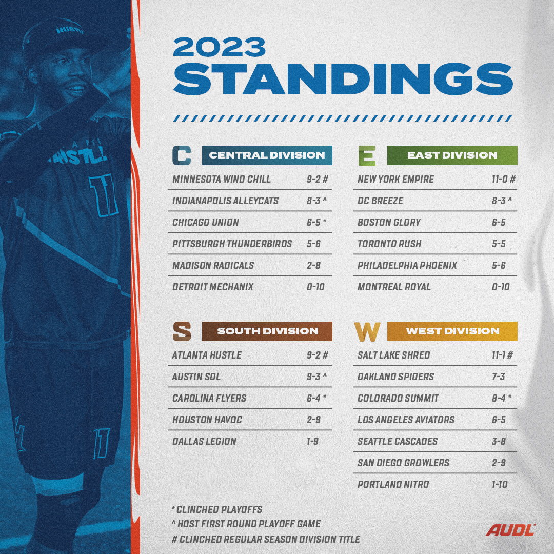 After a mind-boggling start on Saturday against Chicago, the Wind Chill finally woke up. The Union led 4-0 and had the disc with the chance to make it 5-zip before Minnesota answered, but the Wind Chill’s D-line embraced the challenge and fueled an insane break train over the final three and a half quarters, en route to a 22-13 victory that clinched the top seed in the Central. “I could tell based on the way we warmed up that we were going to start poorly, in all honesty,” said Minnesota Captain Brandon Matis. “We didn’t feel dialed in, and the energy felt like we already had everything in the bag.” The Wind Chill’s early struggles were a gift that Chicago couldn’t completely unwrap, as the shorthanded Union could not even hold their early 4-0 lead through the end of the first quarter. Minnesota tied it 5-all through one, led 12-8 at half, and led 18-8 by the midway point of the third.By the end of the night, the Wind Chill defense had a season-best 17 breaks and the Union endured 38 turnovers, their most in any game since 2017. The Chicago O-line scored on just 6-of-35 possessions, a putrid conversion rate of 17 percent, the second-worst single-game offensive efficiency in Union history. “I think we have the most underrated home-field advantage in the league,” said Maris. “Our fans show out big and [Head Coach/GM Ben] Feldman puts on a great event week in and week out, which is a big part of it. But even moreso is the tumultuous wind we seem to experience at Sea Foam [Stadium] [...] We’re uniquely positioned to dominate games and downright comfy when the conditions are not favorable. The [sideline] trap set got us so many turns Saturday.” Like Atlanta, Minnesota will have the privilege of hosting a divisional title game for the first time, as the Wind Chill will take on either Indy or Chicago in St. Paul on August 12. The difference is that while everyone else is trying to earn a trip to the Twin Cities for Championship Weekend, the Wind Chill know they will have home cooking all the way to the title, if they can get there. “It goes without saying that there’s added pressure to make Championship Weekend, both with it being at home and having been so close the last couple of seasons,” added Maris. “We’ve done our jobs well enough this season to put ourselves in a position to ensure that we only need one win at home to do so. I’m thrilled with the execution to get us to this point, but we can still find some consistency on offense and optimize our defensive sets further. The real work doesn’t stop here; it starts here.”