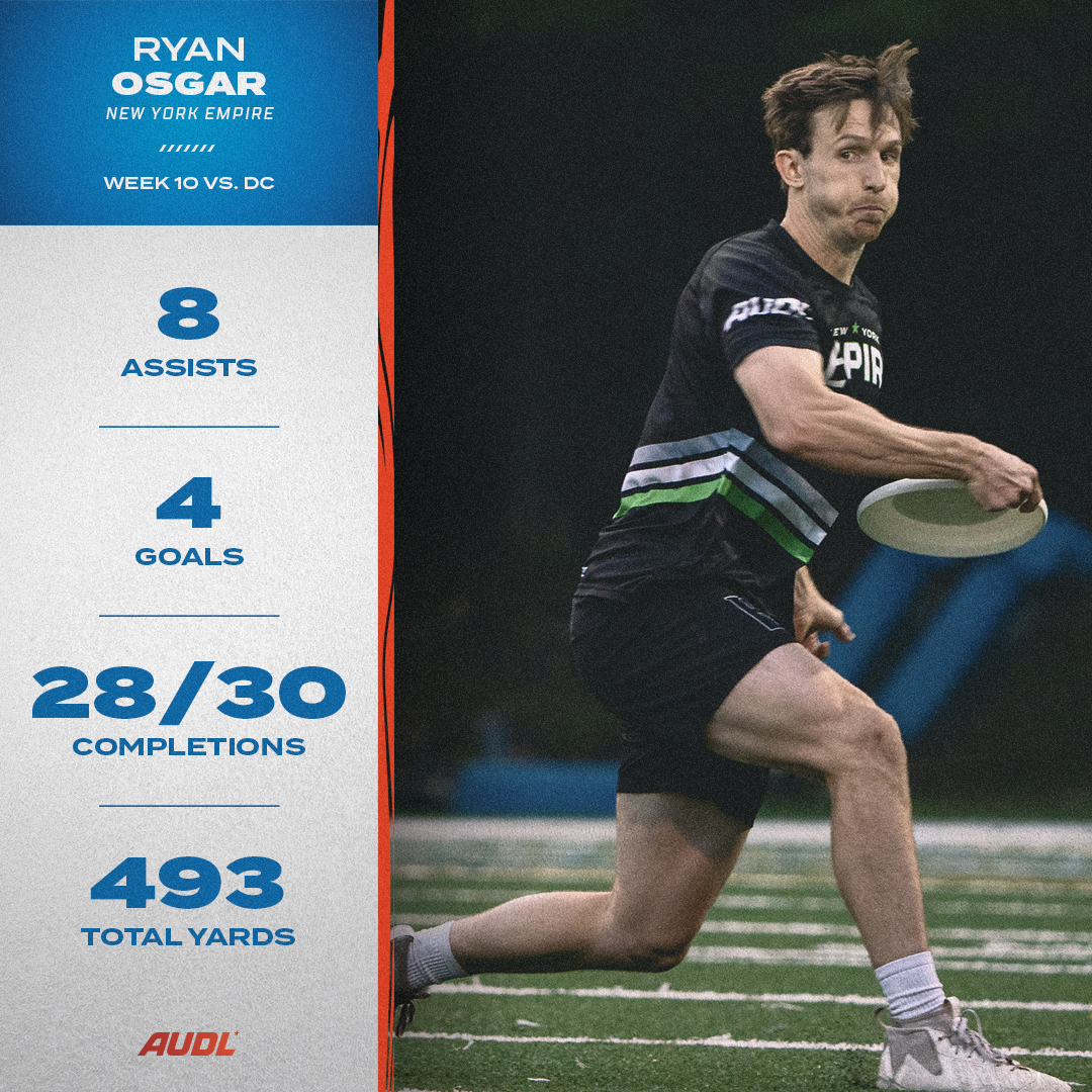 Osgar finished with eight assists and four goals, as the Empire earned their 24th straight win overall, along with their 27th consecutive home win. Furthermore, despite DC rallying back from a multi-goal deficit to take the lead, New York ultimately defeated the Breeze for the 10th time in their last 11 meetings.