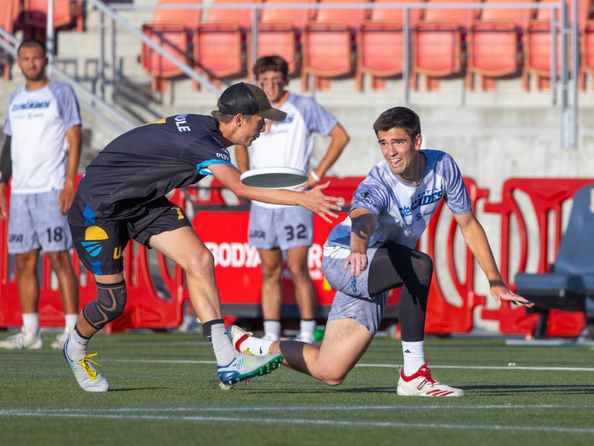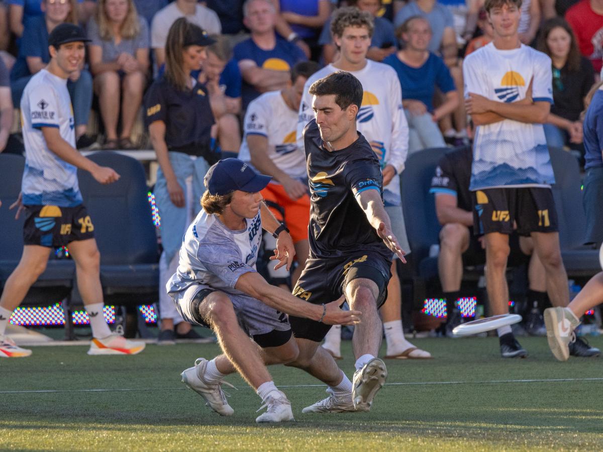 Less than 30 seconds into this four-minute possession, the Hustle started to sense what was happening, but were virtually powerless to stop it. There were still a few dramatic moments, including Olsen contesting an Ethan Bloodworth catch near the end zone that, for a split second, looked like it might be a remarkable game-tying callahan, but the Flyers were able to use the rules to their benefit and simply play keep away all the way to the division title.