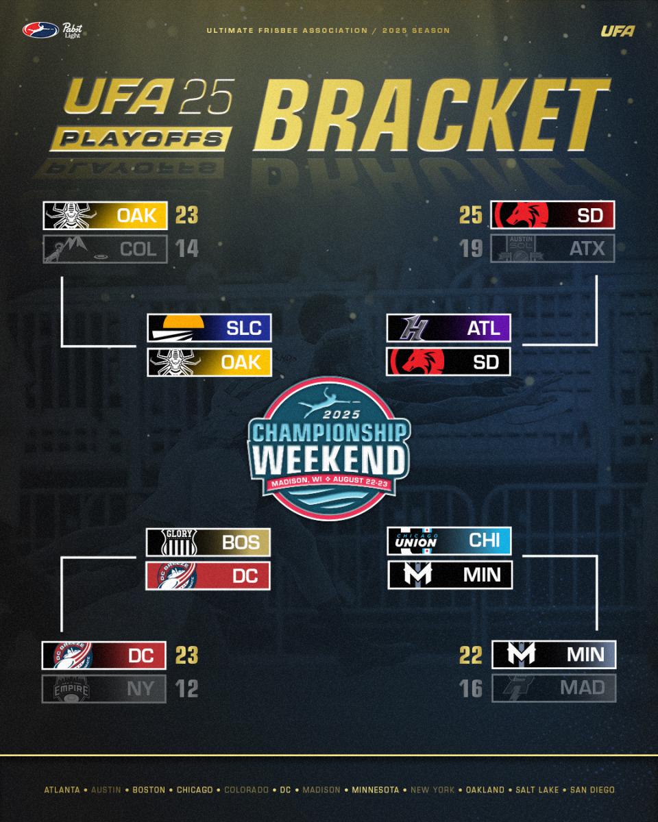 The lopsided nature of all four first-round matchups was certainly a tad disappointing, however it also produced some truly spectacular front-running frisbee. DC, Minnesota, San Diego, and Oakland each delivered its finest performance of the season, a mix of offensive precision, heroic playmaking, and defensive dominance, a trusty combination that’s pretty easy to appreciate.