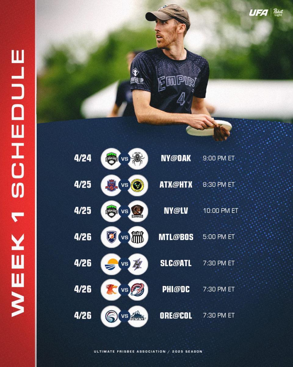 The 2025 schedule also features more cross-division play than any other season in UFA history. Opening weekend is highlighted by three straight days of unprecedented interdivisional matchups, and that’s just the tip of the iceberg.
