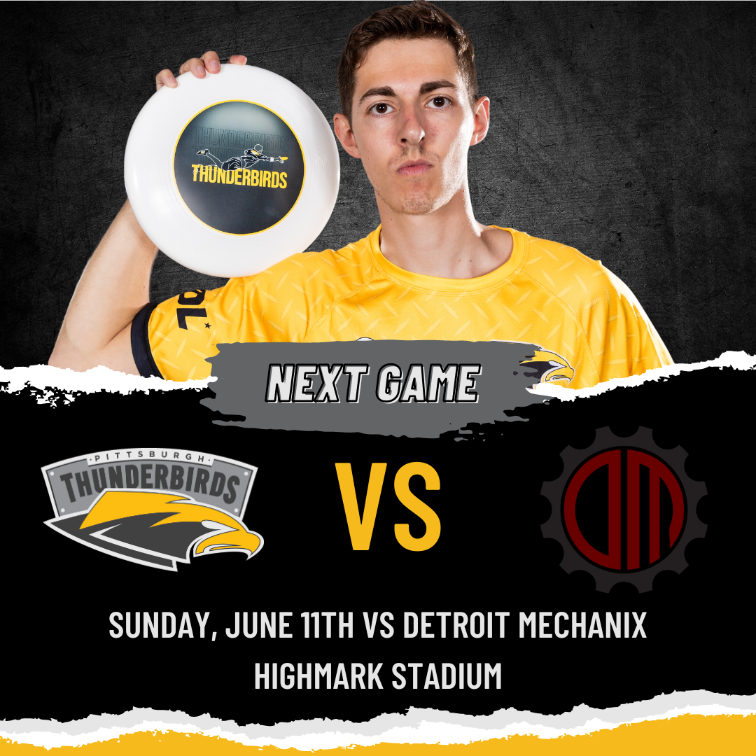 The Pittsburgh Thunderbirds take on the Detroit Mechanix on Sunday, June 11th at Highmark Stadium. First pull is at 2:00PM EDT.