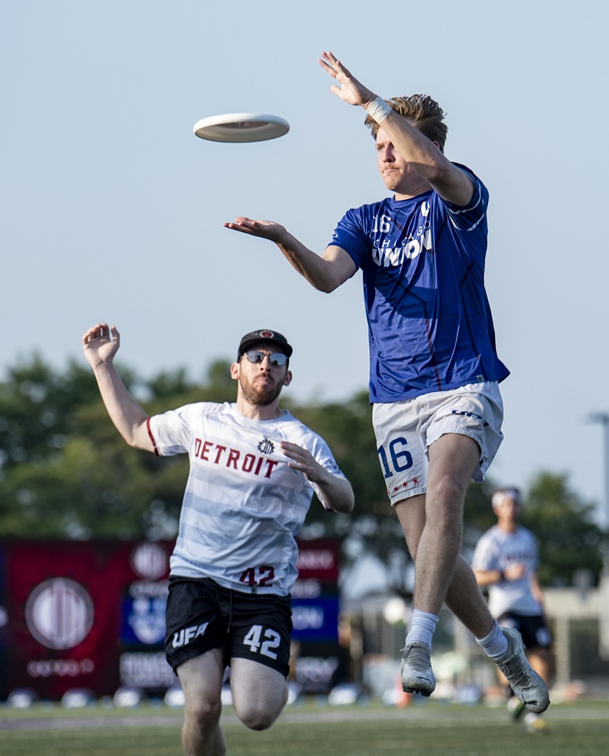 Union captain Sam Kaminsky kept his trademark consistency alive with 35 completions while on offense. The basic skills of throwing and catching has been Chicago’s forte throughout the season, and Kaminsky has excelled in those fundamentals. Break percentage, D-line conversion, and O-line conversion were all dominated by the Union, with margins between the two teams over 20% in all three stat lines. While Jake Felton of Detroit led his squad in four of the UFA’s big-6 categories, this one-man show was not enough to get the entire team over the hump. Yet again, the Union seemed to have a height advantage, and 6’ 6” Redhawk Ultimate coach Joe Cercello is no exception. Chicago used Cercello as a monster in zone coverage, while also having him pull on defensive points so he could prepare his deep threat strategy. The Union will likely need to keep capitalizing on their height moving into the playoffs, as many teams outside the region have loads of deep threats that past champions have not been afraid to use.