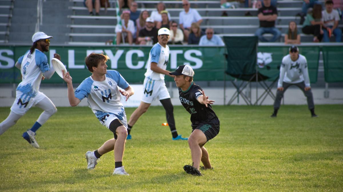 At the end of the third quarter, Pollard picked up the disc in the corner and ran a handler eject, where he got the disc off to a handler and sprinted deep. Then, at the end of the game, Pollard capped off his debut with a major sky from Larson.